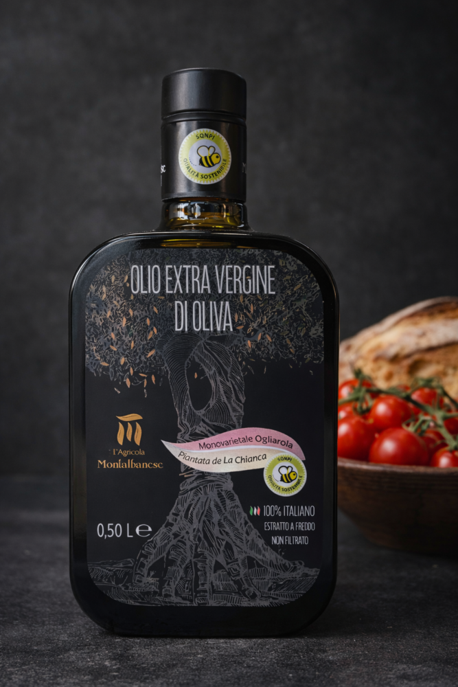 Montalbanese Ogliarolo este un ulei elegant, rafinat si echilibrat, ideal pentru a fi folosit crud: